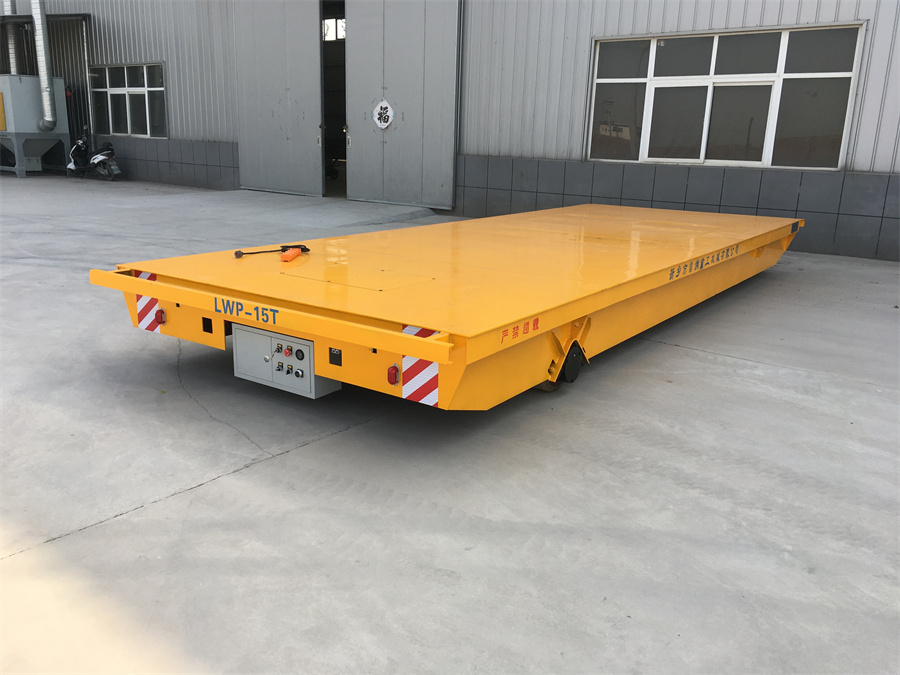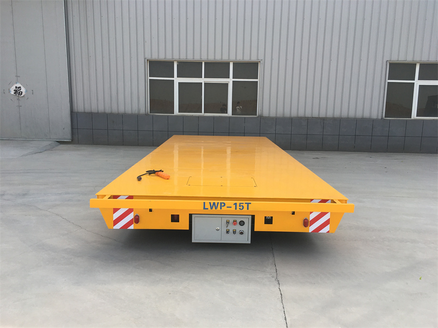 載重15噸 帶防撞欄桿無軌電動平板車