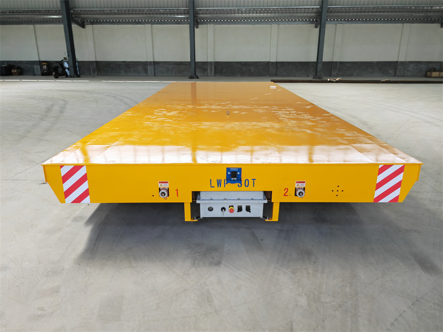 承載30噸大尺寸臺(tái)面無軌搬運(yùn)車,可以單獨(dú)固定萬向輪防止晃動(dòng),增加穩(wěn)定性。運(yùn)行方向加裝雷達(dá)防撞感應(yīng)裝置,增加安全性。