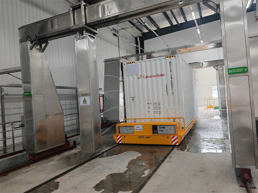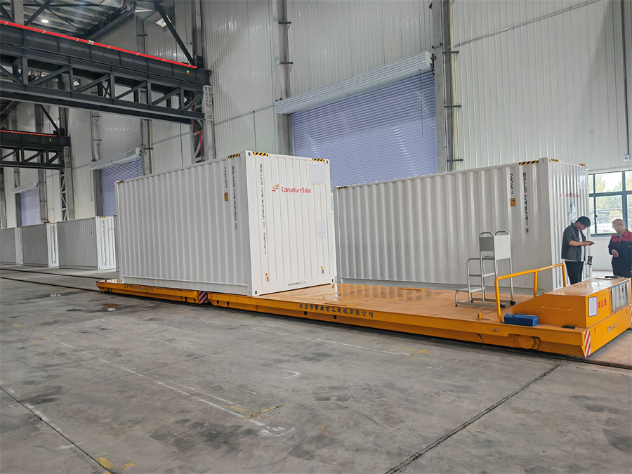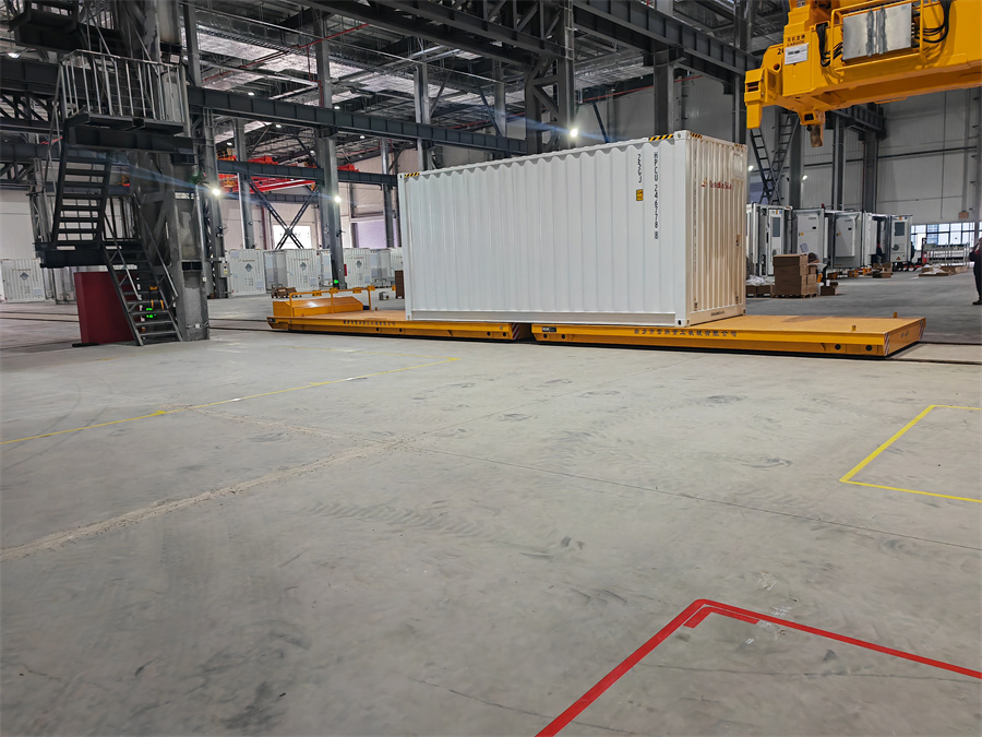 蓄電池供電軌道臺車可以和儲能集裝箱完美適配,根據(jù)集裝箱尺寸大小來定做軌道車臺面,同時有多種供電方式可以選擇。